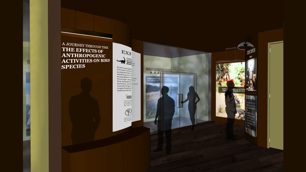 Anthropogenic activities including deforestation, growing infrastructure, manufacturing, and hunting have had substantial impacts on bird species throughout the world, leading to loss of biodiversity, habitat destruction, and ecosystem instability. This hybrid exhibit takes you on a journey through studying the past—the infamous extinctions of birds, the present— understanding causes and effects of human actions, and the future—including actions you can do to prevent worsening conditions for bird species and environmental organizations to support. Representing the Carnegie Museum of Natural History, the exhibit allows visitors to better understand the changing relationship between humans and birds all around us.